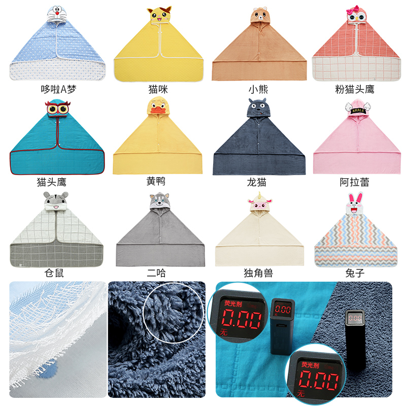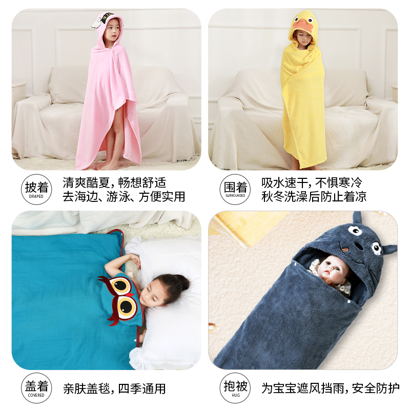 Children's bath towel Cloak hooded can be worn can be wrapped than pure cotton water absorption speed dry cleaning bath towel material Baby bathrobe Baby