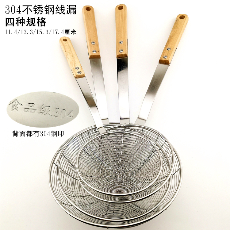 Wangli come 304 stainless steel strainer household wire leakage wood handle heat insulation strainer ladle for kitchen supplies