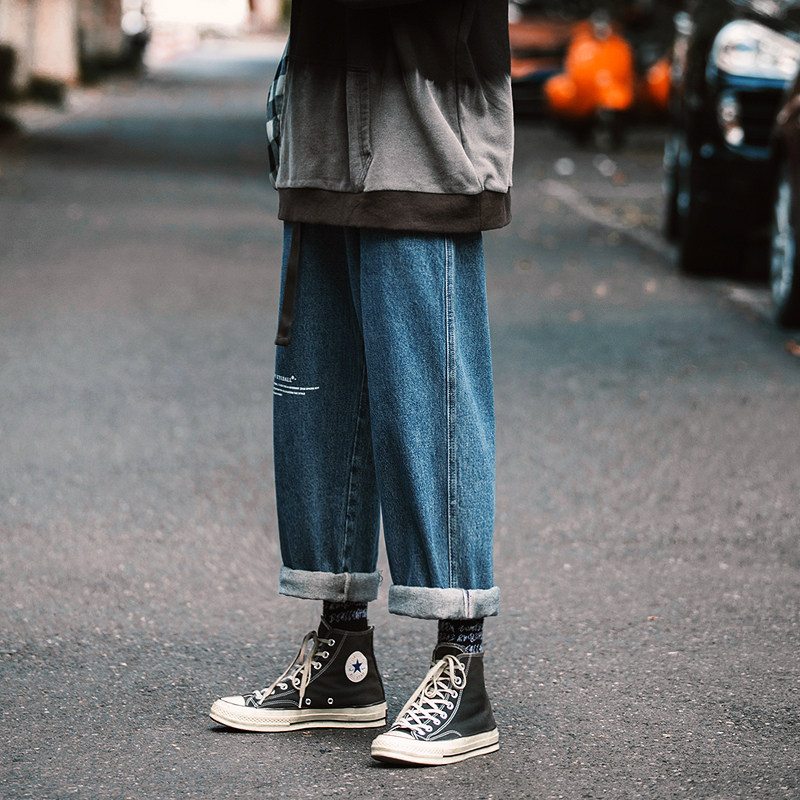 Purifying eyeballs homemade jeans Men's boomer bunches Clothing Pants Loose Straight Barrel Casual Pants Hip Hop Broadlegged Pants
