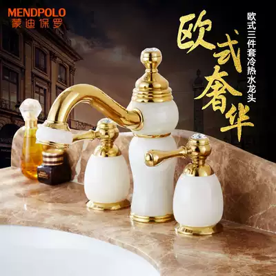 Faucet basin faucet three-hole two-piece washbasin faucet household Jade faucet three-piece copper