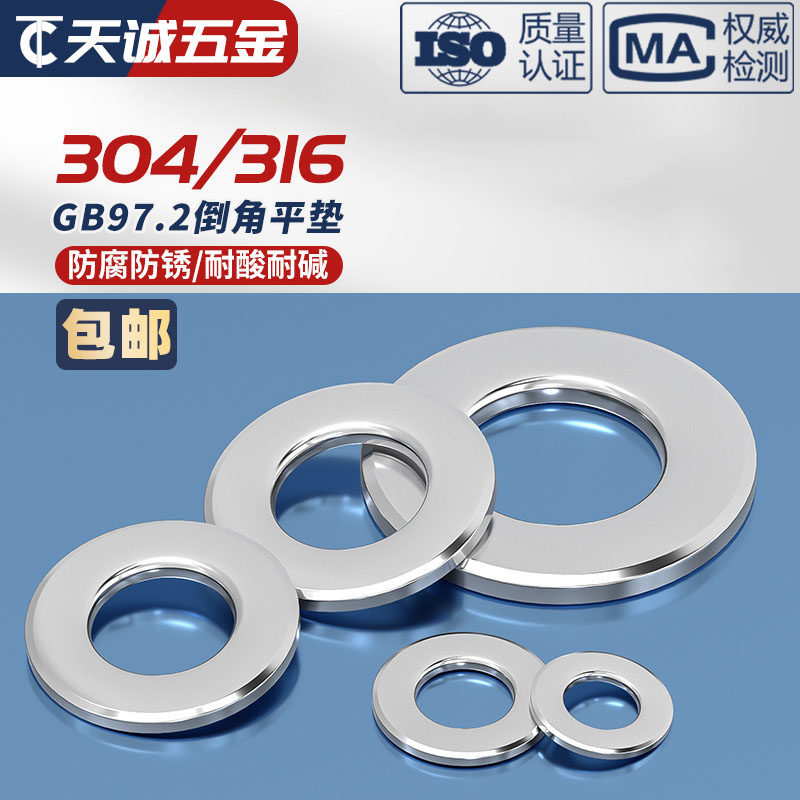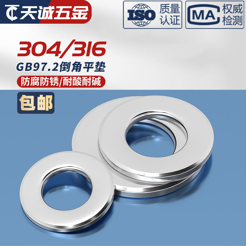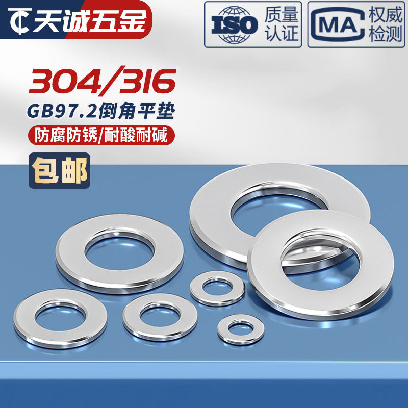 304 stainless steel A grade chamfered flat gasket chamfered flat gasket mesons M5M6M8M10M12M16 GB97 2-Taobao