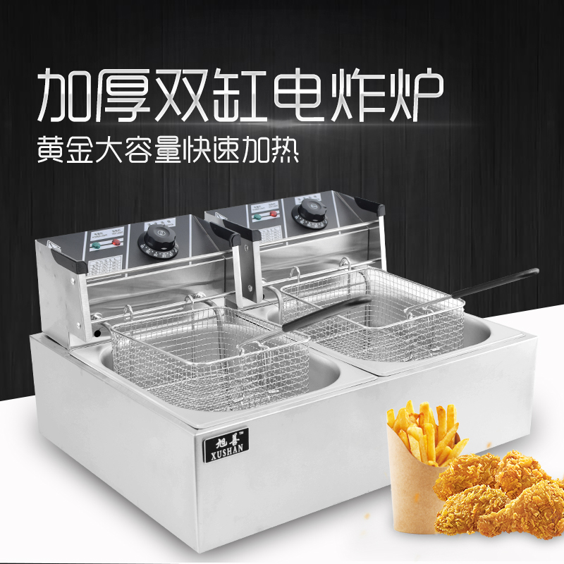 8L thickened electric fryer commercial fryer double-cylinder fritter machine fried skewer fried chicken stove 11L single-cylinder french fries chicken chop
