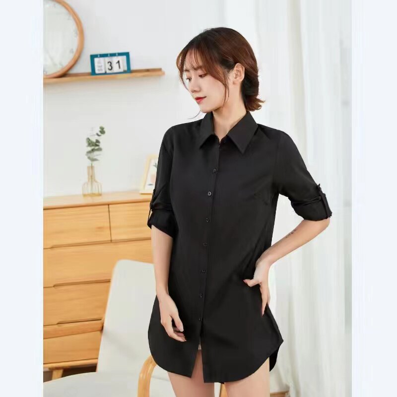 Korean version large size medium long version white shirt woman 2022 summer style clothes loose college wind blouse 100 hitch slim fit shirt