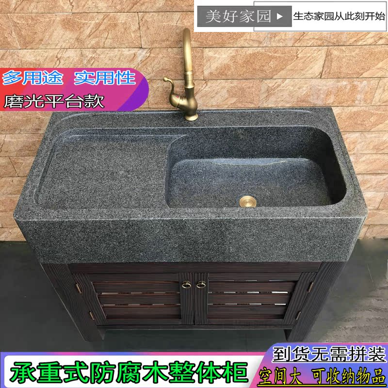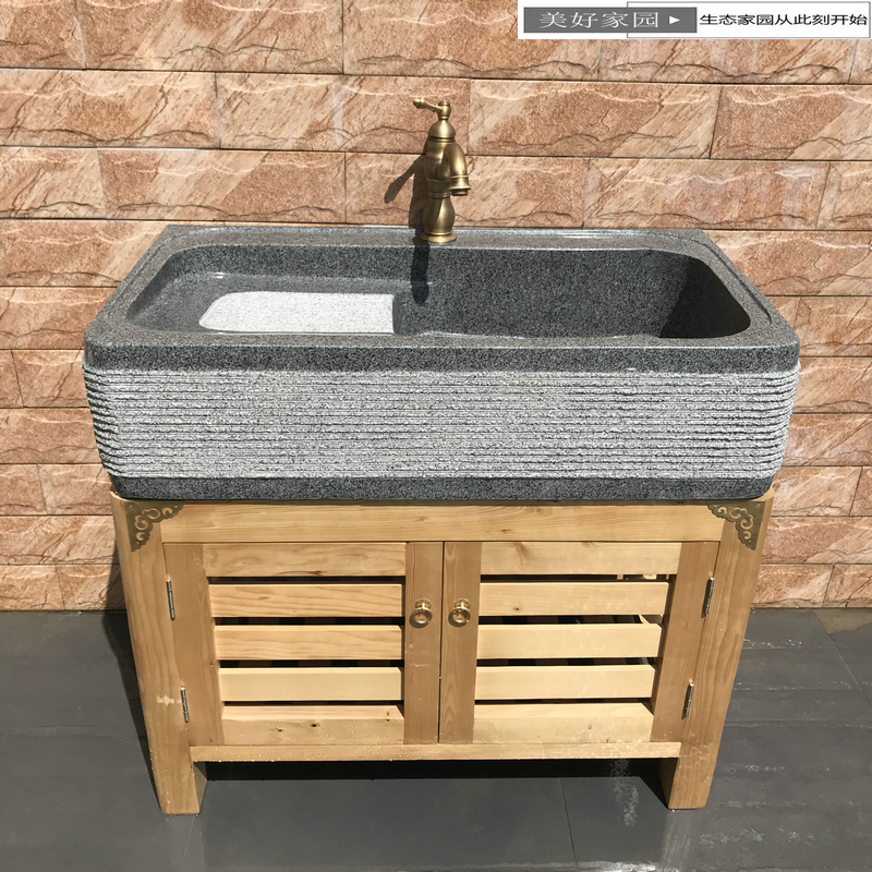 Marble anti-corrosion wooden cabinet Outdoor wash basin Household stone laundry pool Balcony Stone pool Courtyard sink