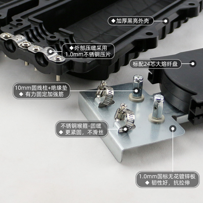 Optical cable connection box black and bright thicker version 12 24 36 48 72 96 144 core 2 in 2 out large D type factory direct sales 12 screw type optical cable connector box fiber box welding package