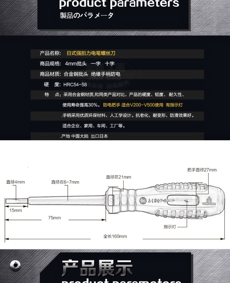 Japan multi-function high voltage electric test pen insulation screwdriver Electrical special tools Germany test electric pen import ten