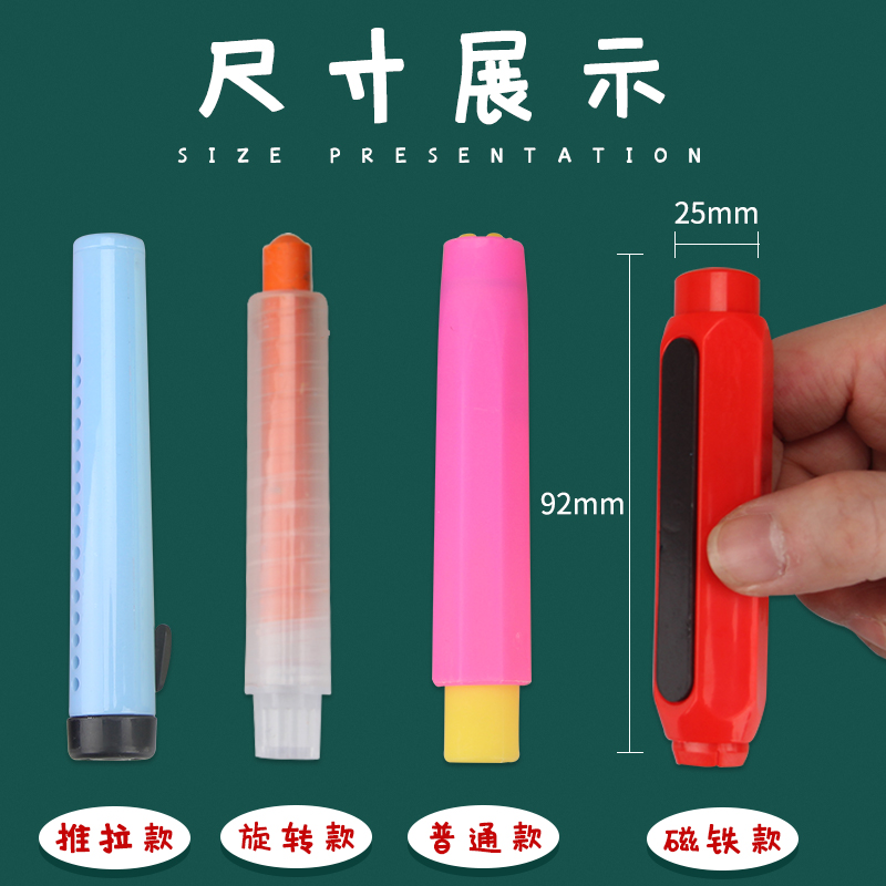 Rotary and push-pull model is only suitable for 1cm round chalk Magnetic type 4 (4 colors each 1) Magnetic type 8 Plate rub (2 in 4 colors) Normal 10 (color random) Normal model 20 Plate supply eras (color random) Rotating model 5 Rotating model 10 Plate feeding erasing Magnetic suction Boxed 8 Plate feeding wipes (4 colors 2) Rotating box 5 Rotating boxed 10 plate feeding wipes Choose 10 remarks style (non-boxed)