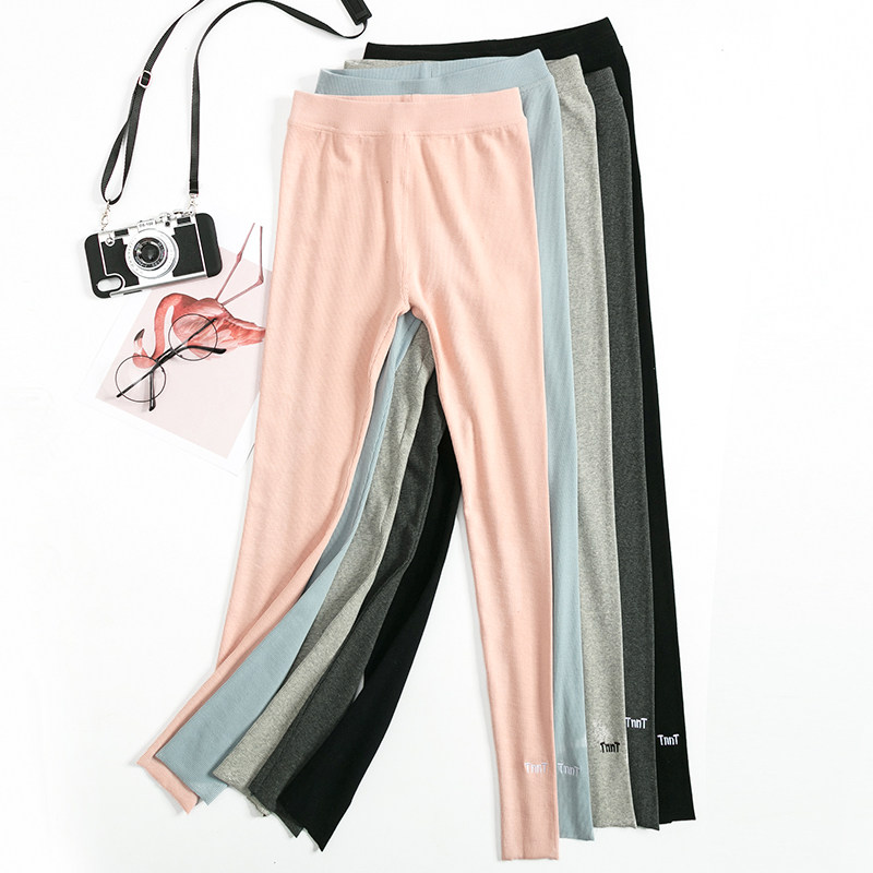 Cotton gray leggings women wear thin spring and autumn high waist slim autumn and winter plus velvet trousers plus size threaded pants