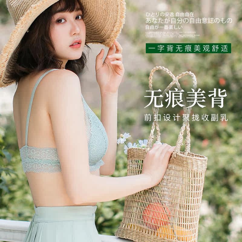 One for a moment a new sexy lace French lingerie Spring and Summer Light Trigonal Cup girls front button to gather bra cover