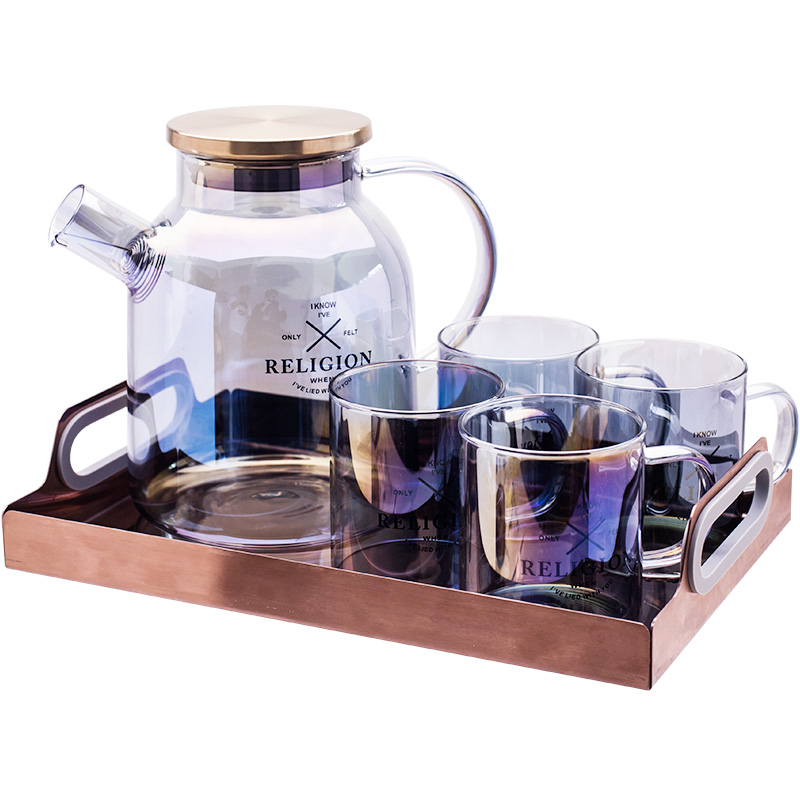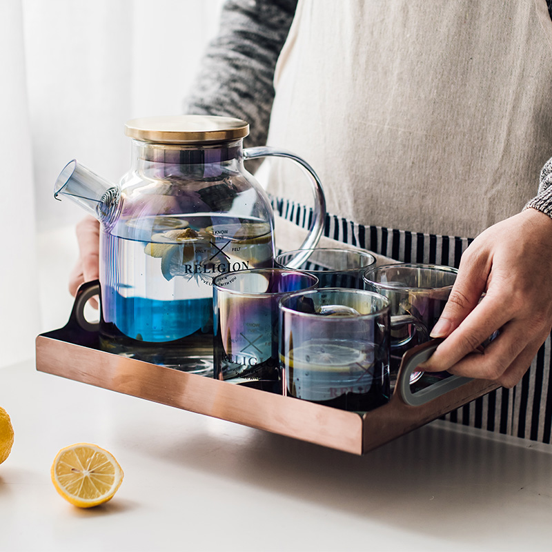 Japanese style colorful glass cold water pot cup set Living room household heat-resistant high temperature explosion-proof large capacity cold water pot