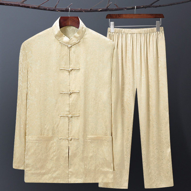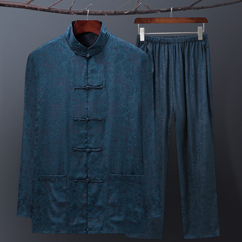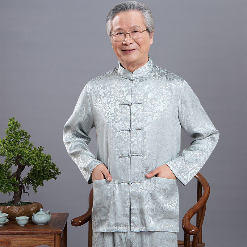 Spring and summer silk Tang dress male middle-aged mulberry silk dad long-sleeved suit Chinese style old man grandpa silk summer dress