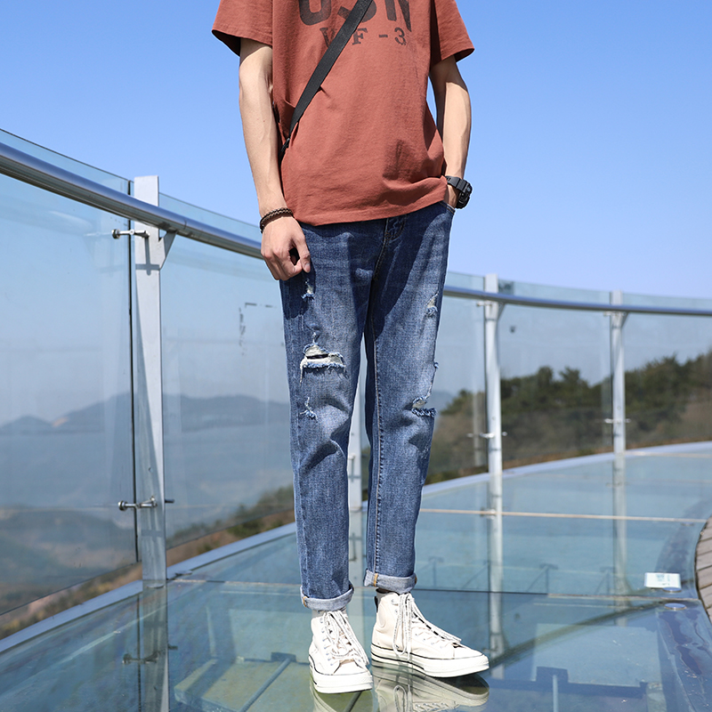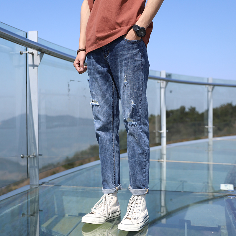 Ripped jeans men's trousers slim-fit small feet Japanese spring and summer new youth Korean version of the trend Harun elastic personality