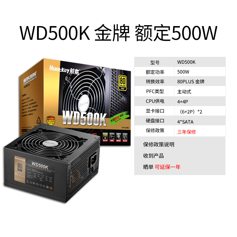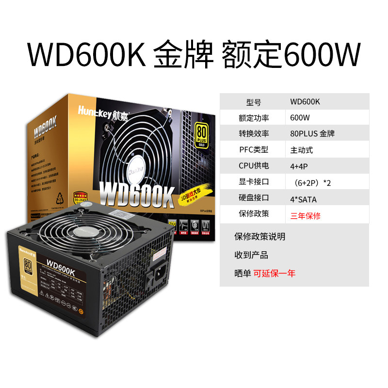 Hangjia WD500K 600K 650K gold medal rated 500W 600W desktop computer wide mute power supply