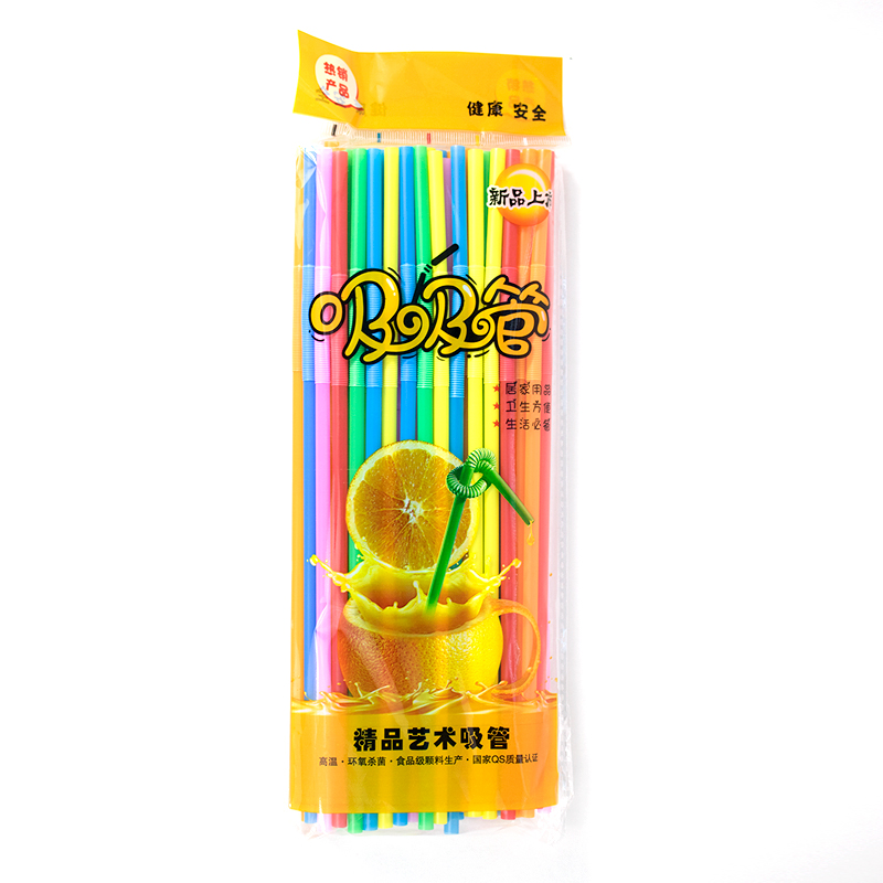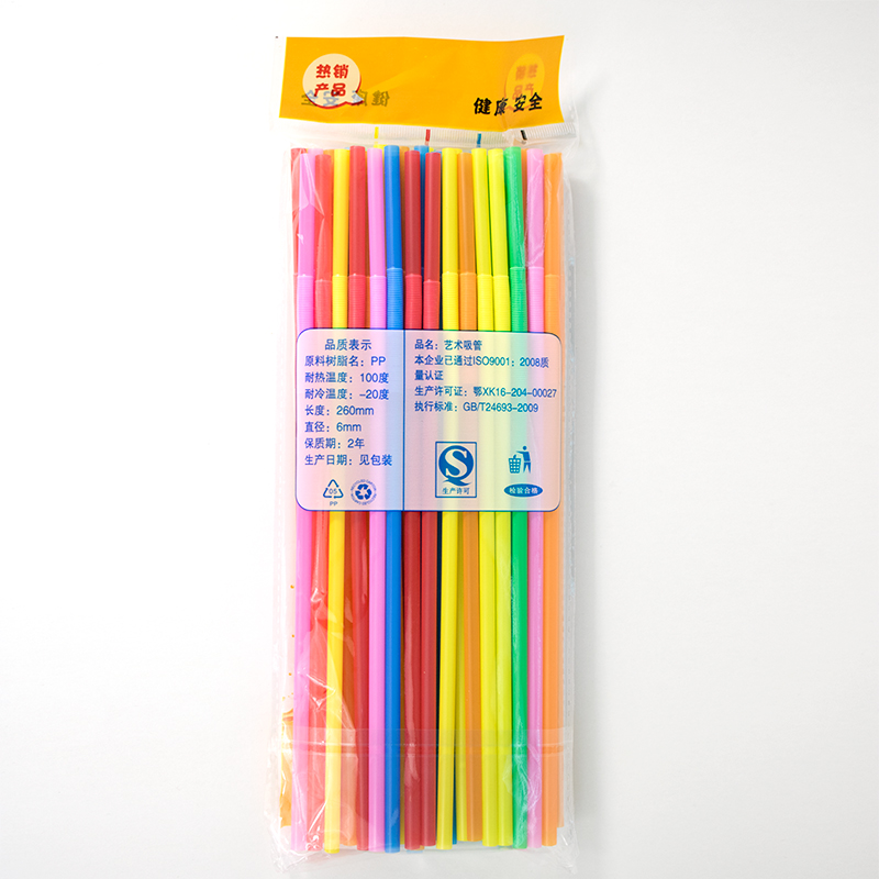 Color plastic art straws disposable independent packaging creative straws juice thick bendable long straws whole package