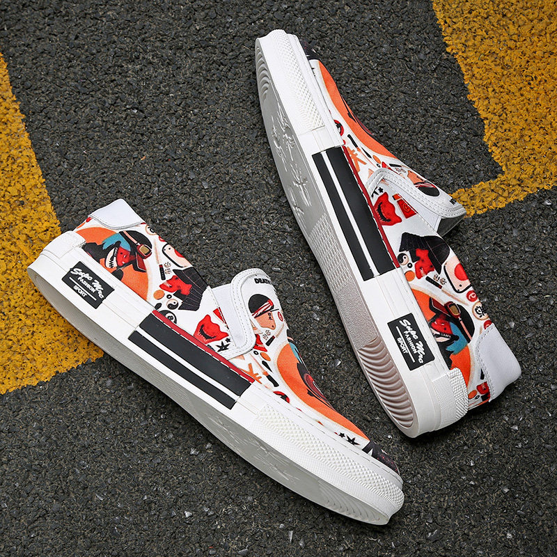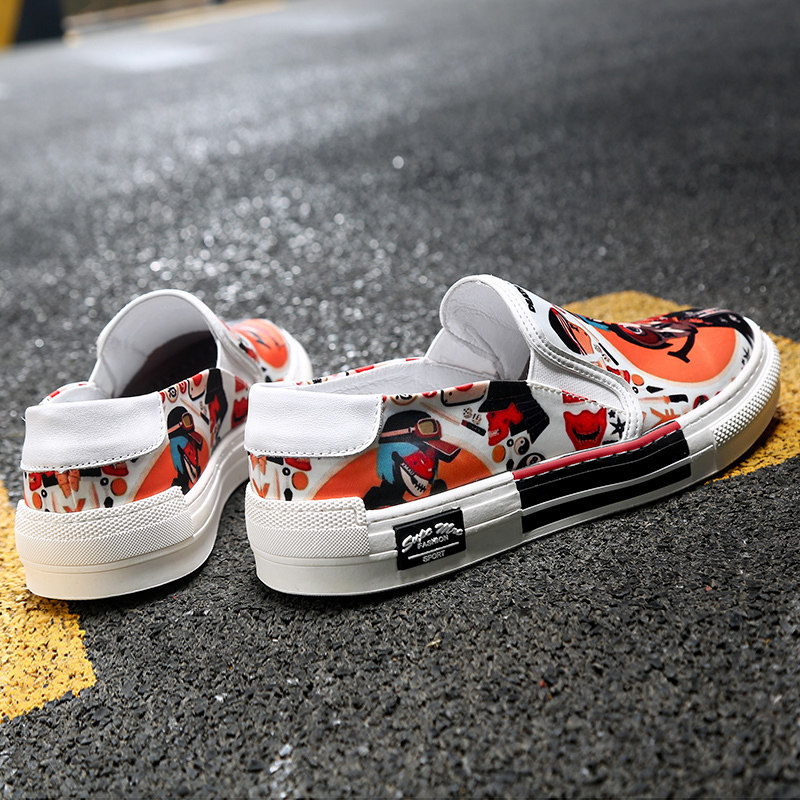 Summer hip hop board shoes Korean version fashion pullover lazy graffiti breathable boys loafer shoes tide shoes casual canvas shoes