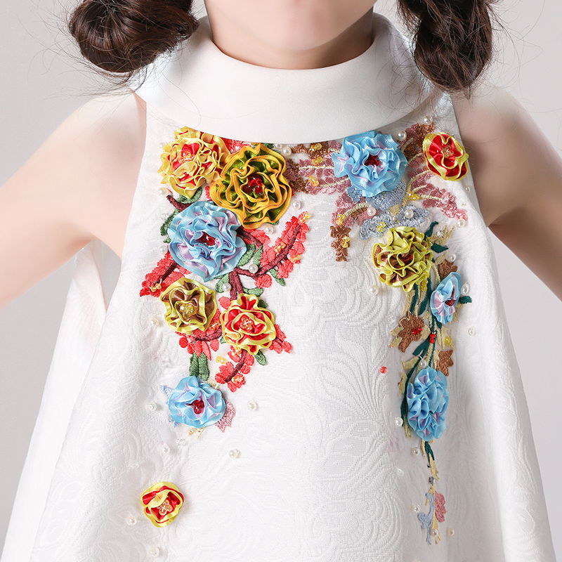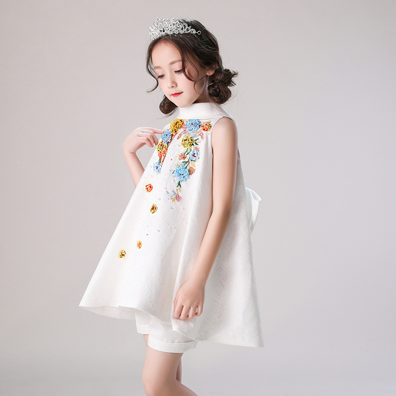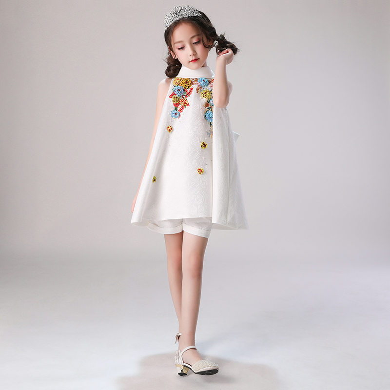 Children's dress princess dress noble girl white flower girl foreign style evening dress host piano performance costume high-end