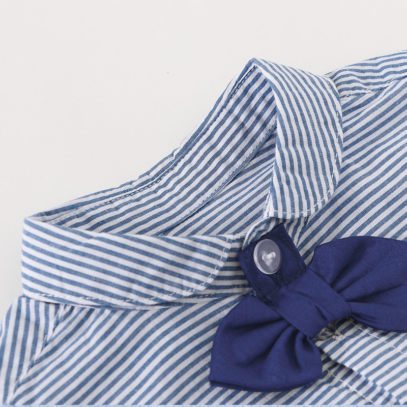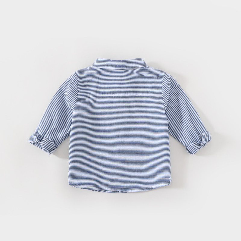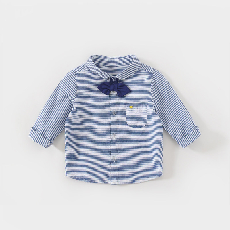 Boy Shirt Baby Autumn Clothes Infant Foreign Pie Pure Cotton Long Sleeve Collar Tie Striped Shirt Mid-Boy Spring Cardiovercoat