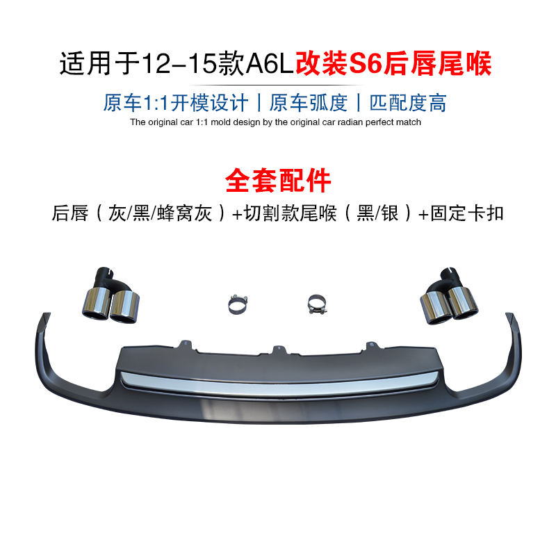 Suitable for 12-18 Audi A6L modified S6 four-out exhaust tail throat rear lip RS6 sports rear bar chin surround