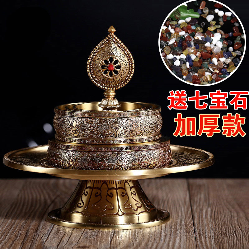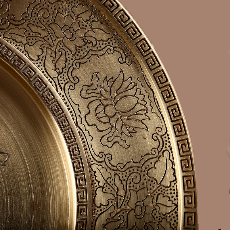 Alloy Manza disc beautifully hand carved floral pure Bronze Man tea Rofo Hall 7 jewel 8 auspicious Manza disc for the Buddha