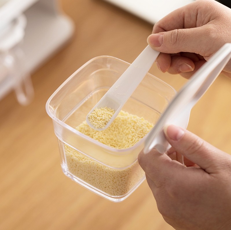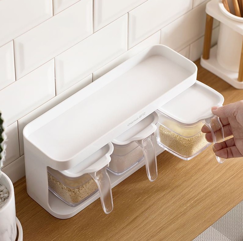 Tea Flower 400M Three sets of Relattice Sort by pressing Seasoning Boxes Free of perforated moisture-proof seasonings to contain seasoning cups 007001