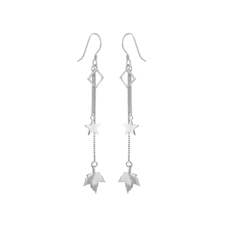 Butterfly star earrings Rhombus star earrings Silver bead earrings Tassel star earrings Plum blossom diamonds Plum blossom hollow flower round beads