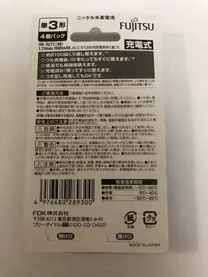 Fujitsu FDK No 5 Nickel-metal hydride rechargeable battery HR-3UTC 4-pack 1900 mAh Japan local version
