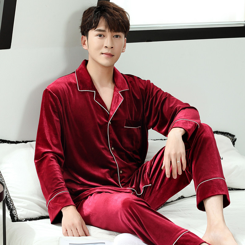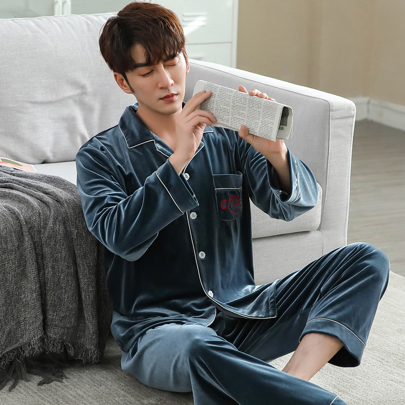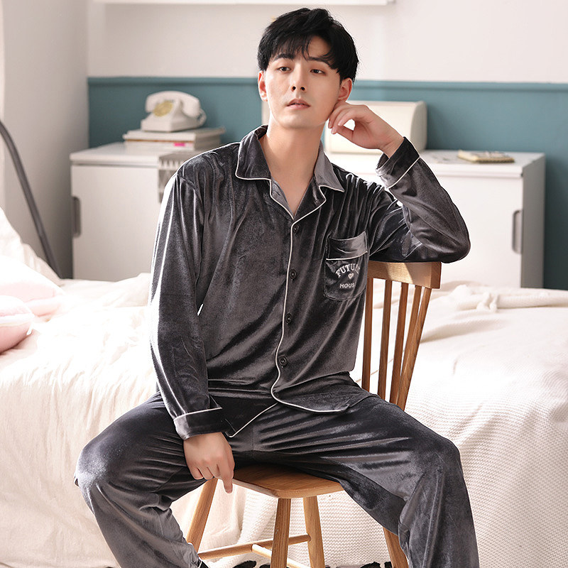 Golden Velvet Pyjamas Men's Autumn Winter Days Long Sleeves Men's Coral Suede Warm Spring Autumn Season Teen Students' Home Clothes