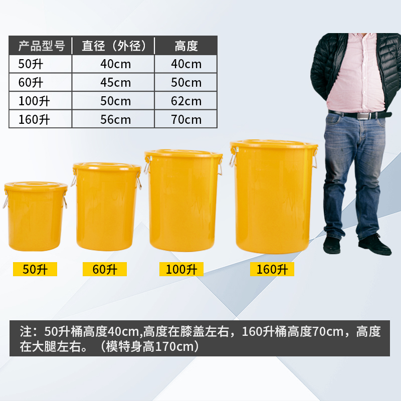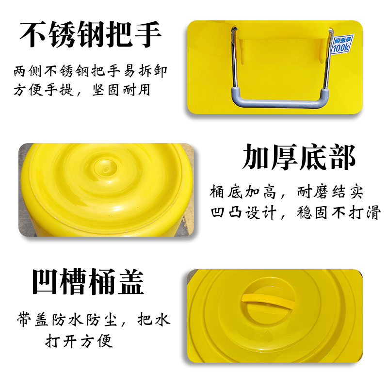 Large Trash Cans Big Numbers Sanitation Capacity Kitchen Dining Outdoor No Cover Round Commercial Yellow Covered Brown Plastic