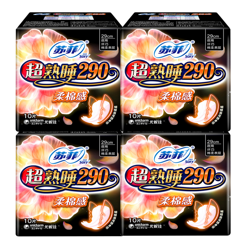 Sufi sanitary cotton day and night with young girl special student aunt towel ultra-thin 290 whole box suit Buy 4 packs of 40 pieces