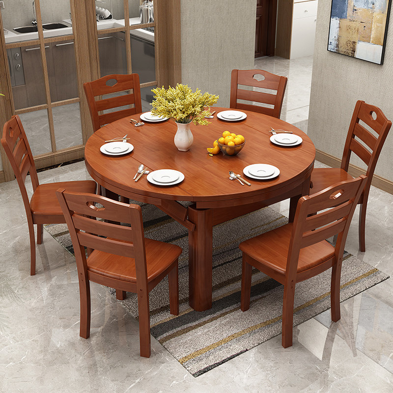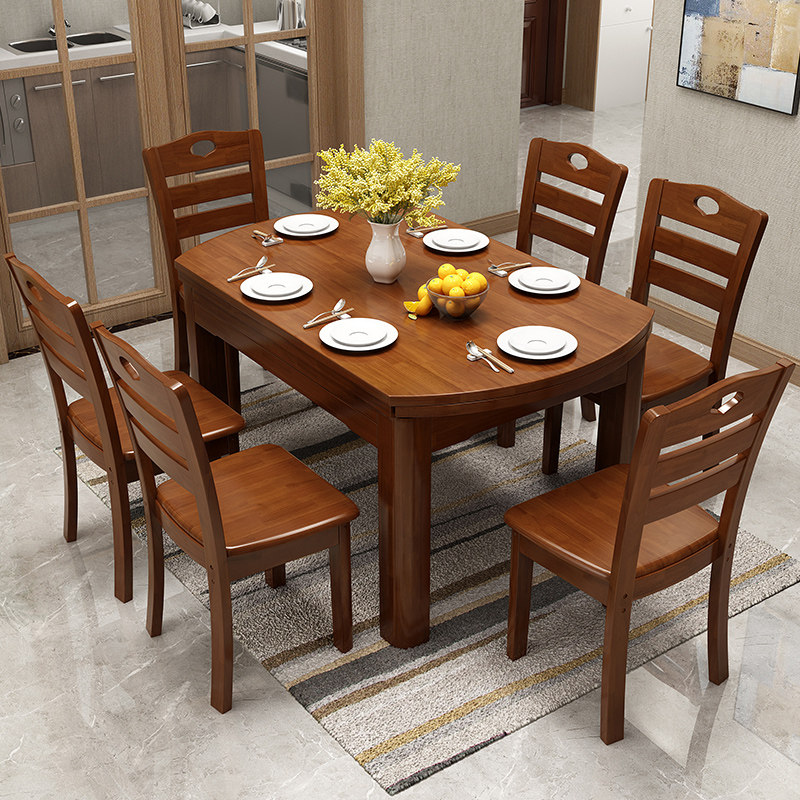 Modern Chinese solid wood dining table and chairs combined with telescopic folding and rectangular round table dining room dining table home furniture