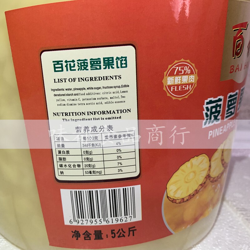 Hundred Flowers Pineapple Fruit Filling 5kg Barrel Bread Cake Mousse Dot Sandwich Decorated Baking Raw Material Fruit Grain Filling