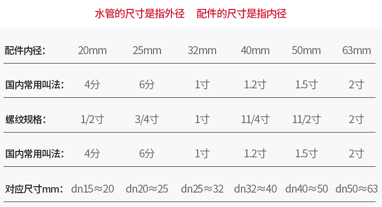 20 4 points 25 6 points 32 1 2 50 40 1 1 5 inches 50 2 5 inches 75 2 inches 75 2 5 inches 90 3 inches 110 4
