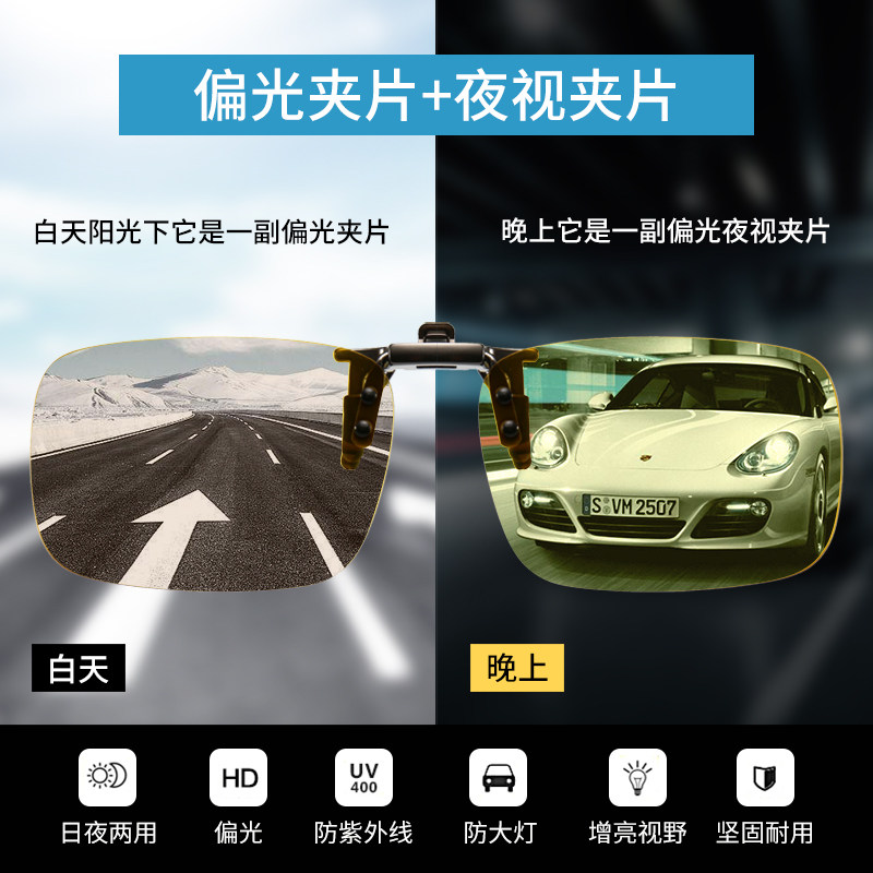 Color-changing polarized myopia night vision clip Driving driving day and night dual-use sunglasses Men's and women's anti-high beam sunglasses