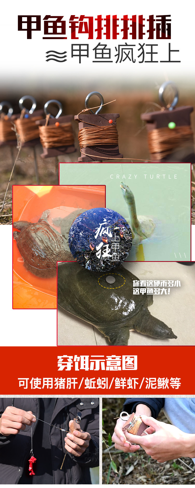 Turtle fishing Turtle hook line set A full set of plug-in row hook Eel catfish son of a bitch hook Lazy hook hand fishing special