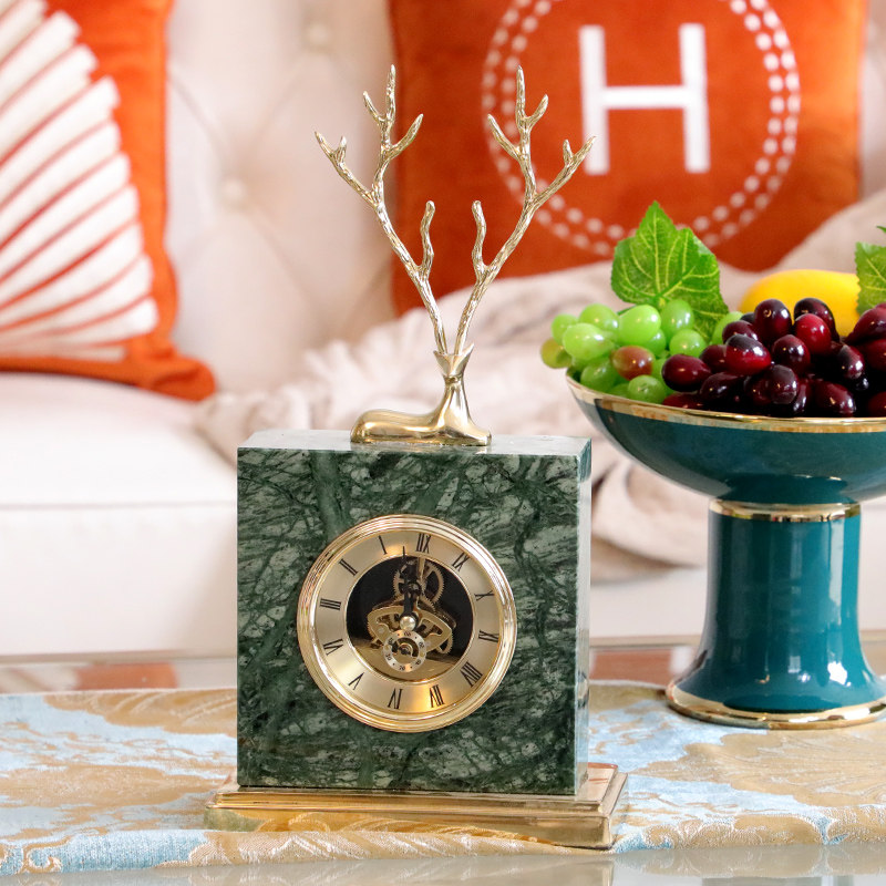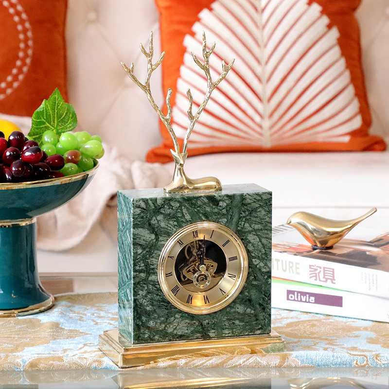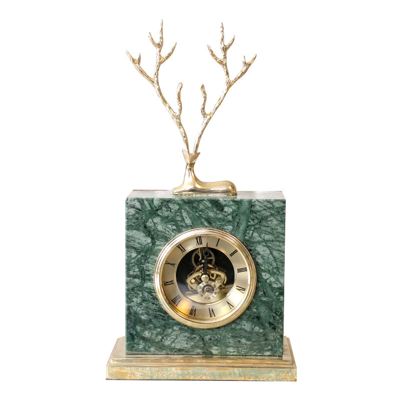 Emerald green marble bronze deer clock