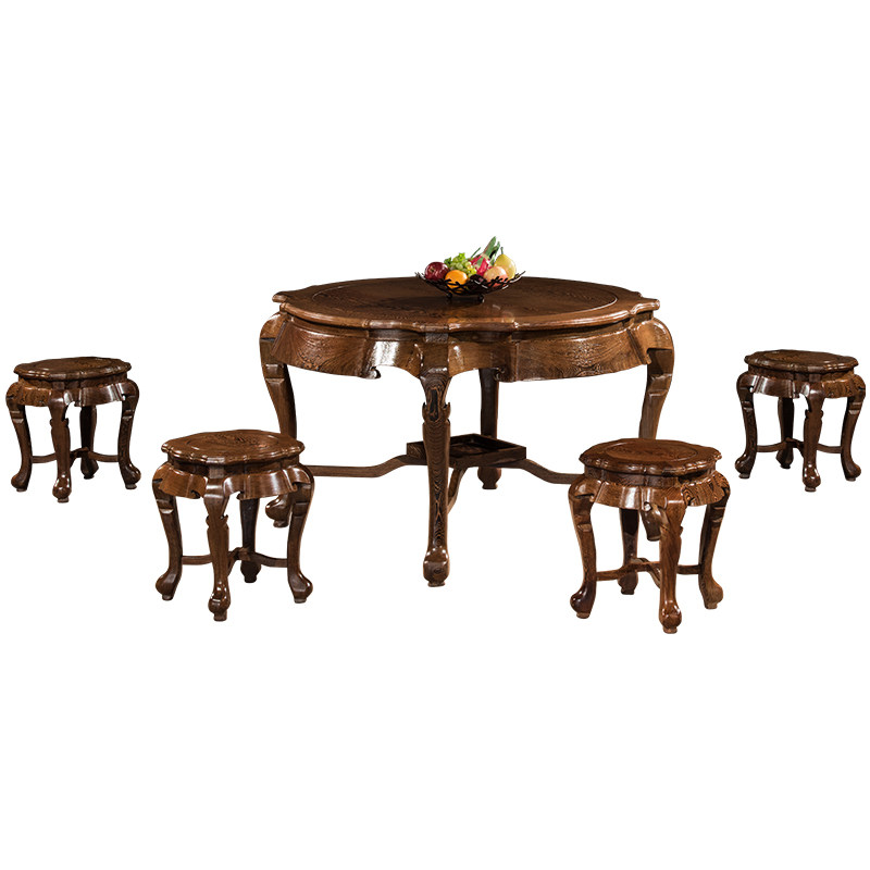 Mahogany round tea table new Chinese small apartment-shaped dining table and chair combination chicken wing round dining table all solid wood dining table furniture