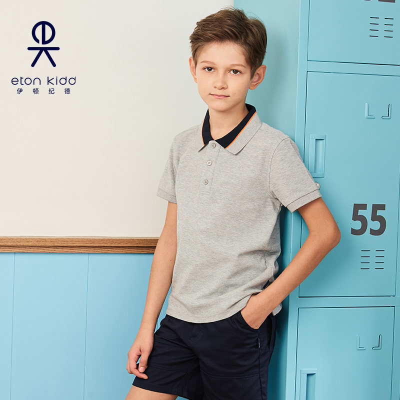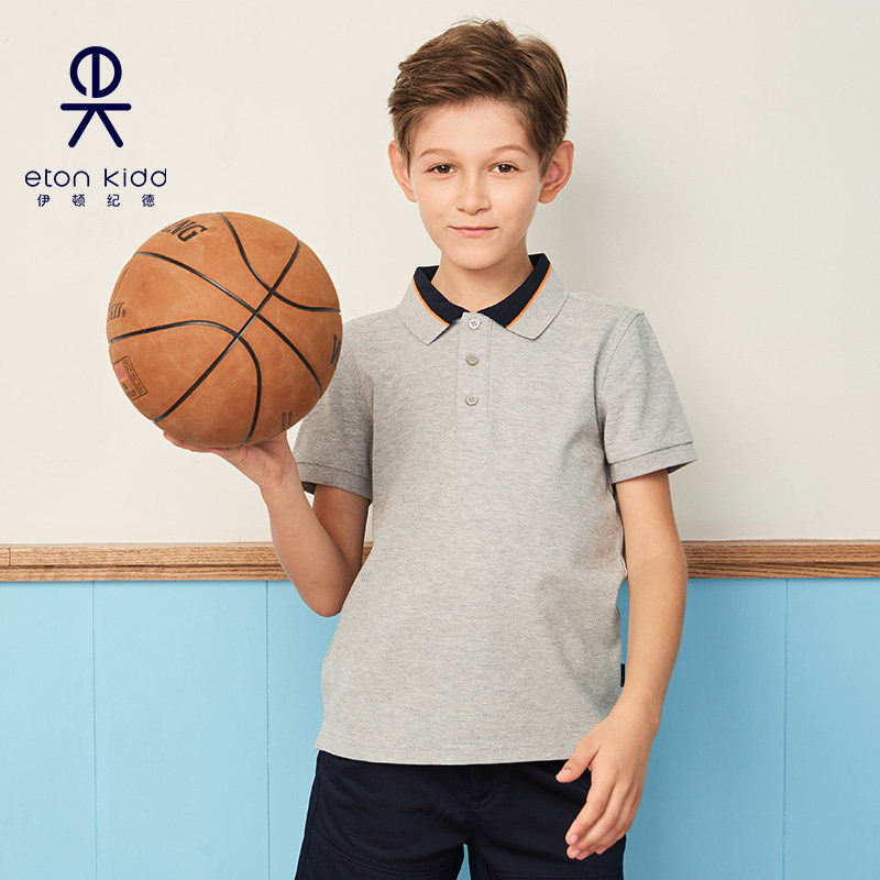 Eaton Guild school uniform Male girl's summer sweating and breathable light grey orange red Pearl ground mesh short sleeve T-shirt 17T043