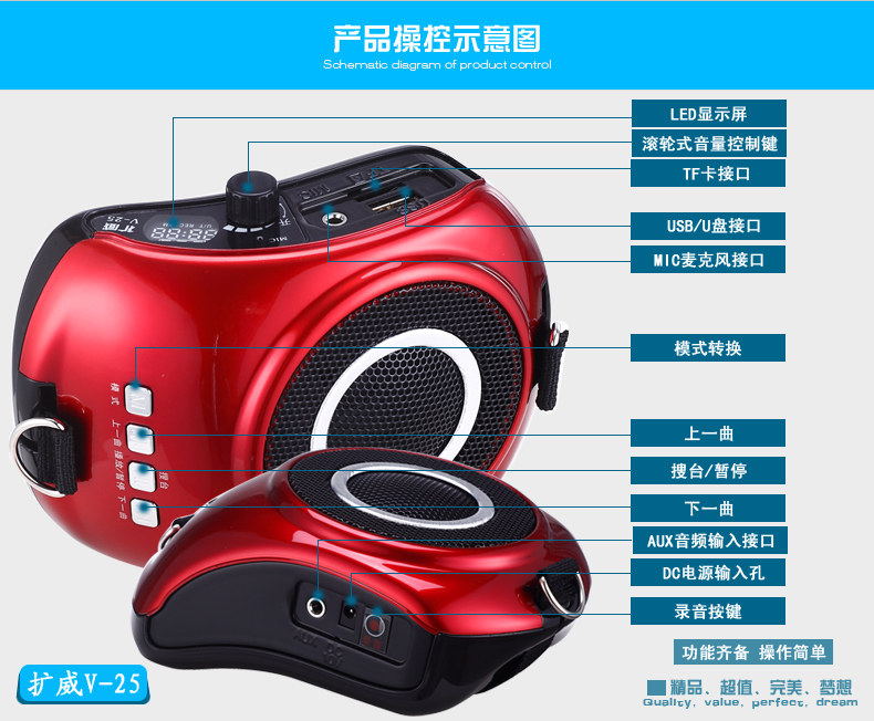 Megaphone V25 wireless headset Bee teacher special loudspeaker Outdoor audio promotional huckleberry horn recording