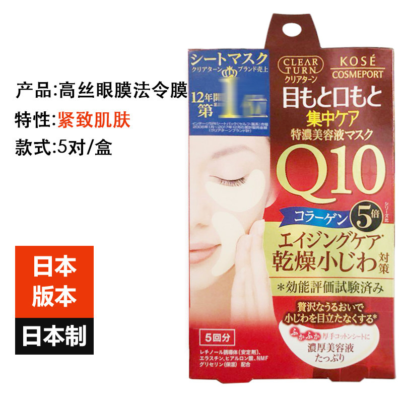 Shenji Ridai Japan Kose Q10 firming eye mask to remove law pattern dark circles 5 pairs moisturizing skin-friendly eye patch