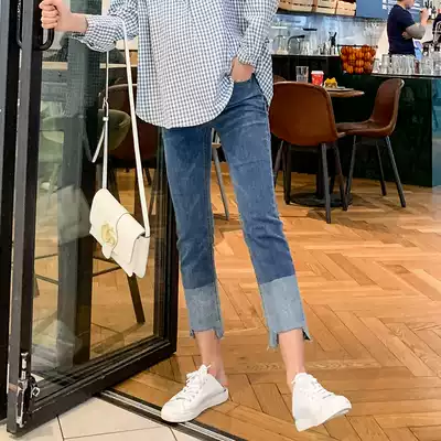 Pregnant women jeans spring and autumn 2021 New Korean version slim slim thin color color straight tube with pants Spring Suit