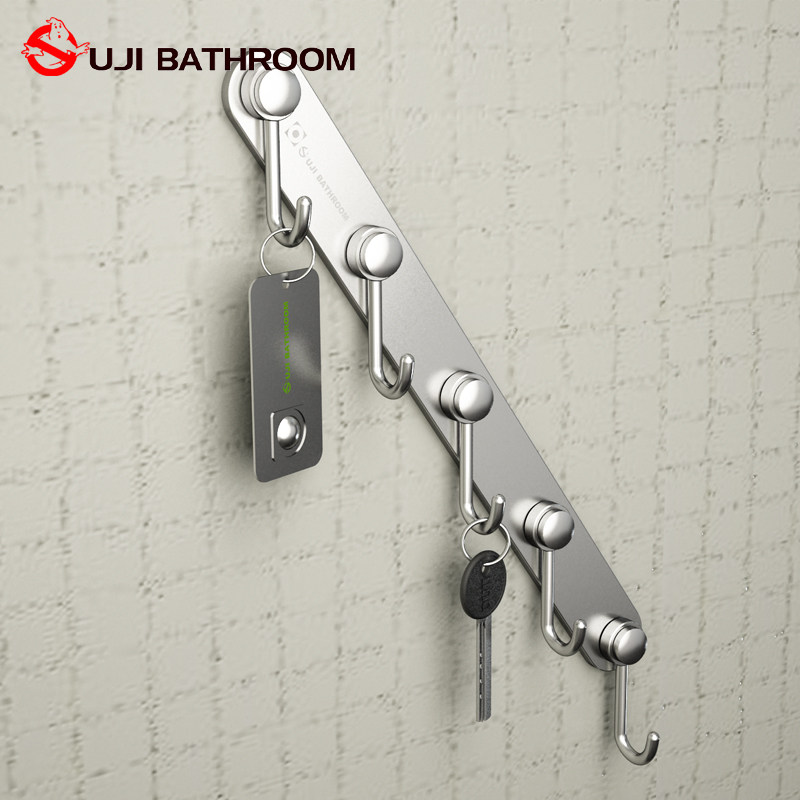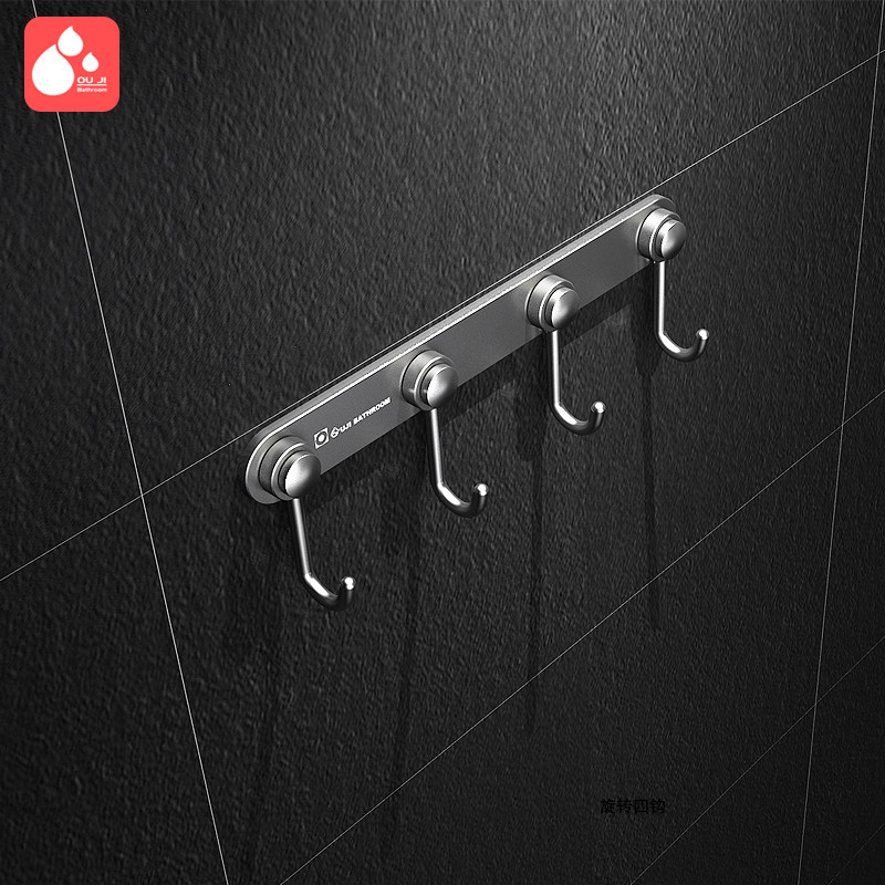 Ouji free hole space aluminum metal hook row hook Clothing bag hook Bathroom kitchen powder room door Rear entrance wall