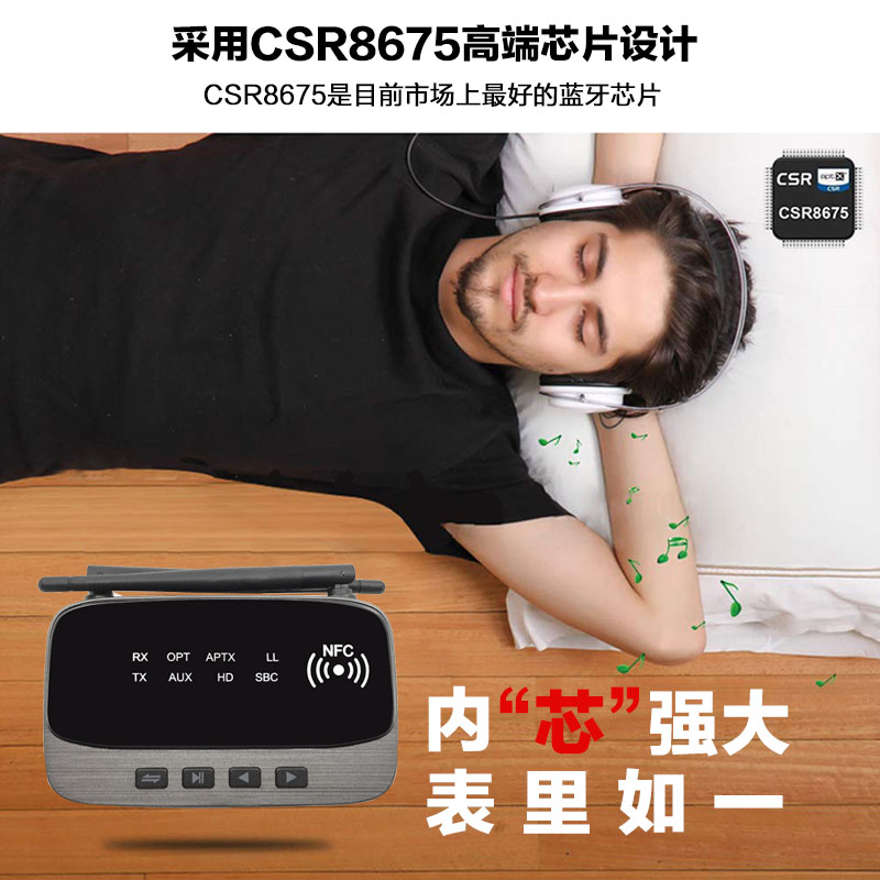 Optical fiber bluetooth 5 0 receiver transmitter audio distortion-free transmission audio amplifier headphone TV aux two-in-one
