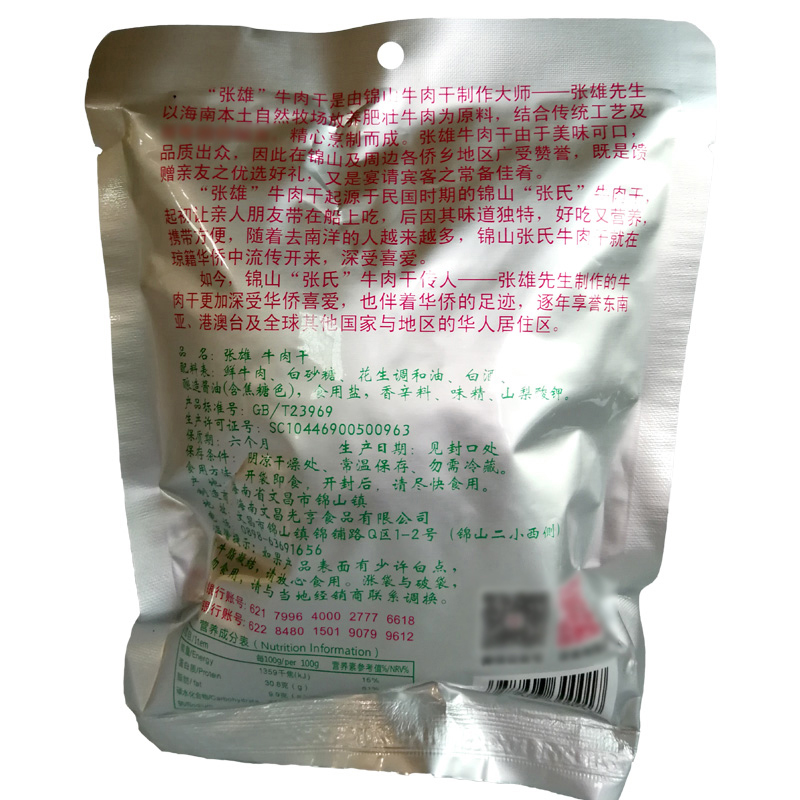Zhang Xiong beef dry 188g spicy taste of Hainan specialty five fragrance of Wenchang Jinshan beef dried meat