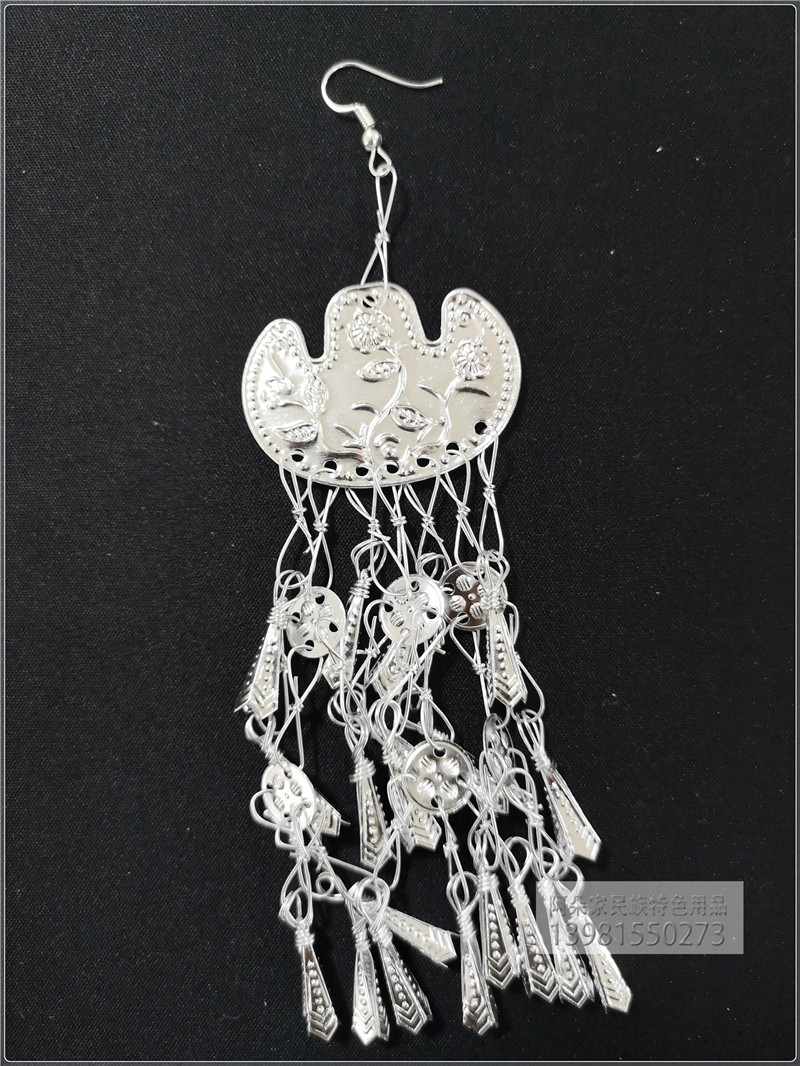 Sichuan Liangshan Yi Earrings Imitation Silver Long Stream Su Lady Earrings Folk Wind Dance Decoration Props