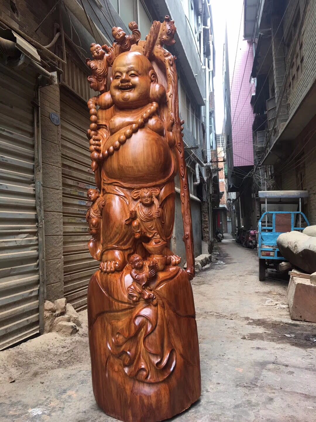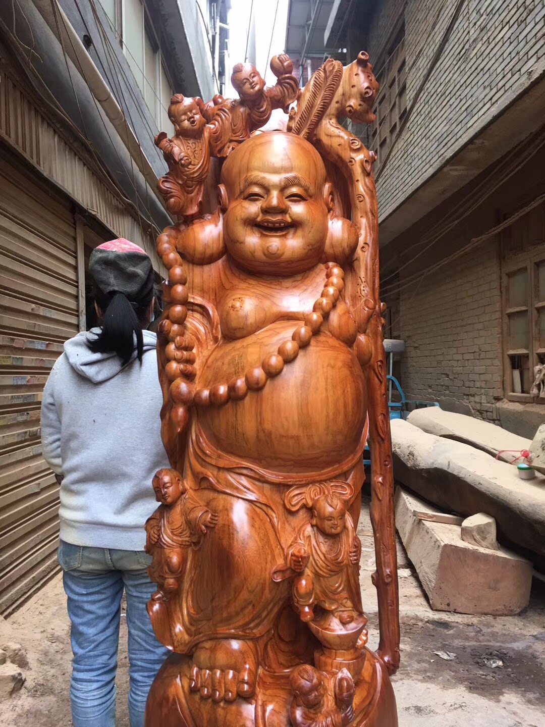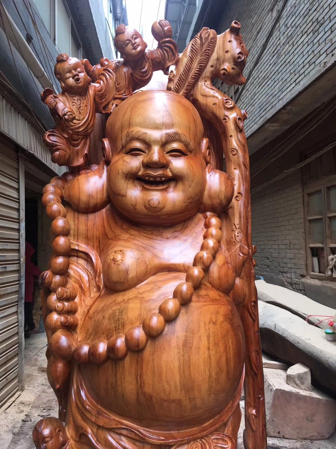 Root carving wood carving ornaments five sons Maitreya Buddha rosewood texture good festive laughing Buddha gifts villa craft gift decoration