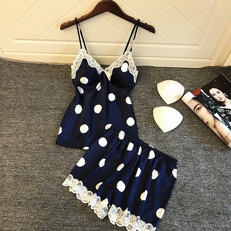 2022 New Ice Silk Sexy Suspender Shorts Thin Lace Belt Chest Pad Gatherable Can Be Worn Outside Korean Version Two-Piece Set