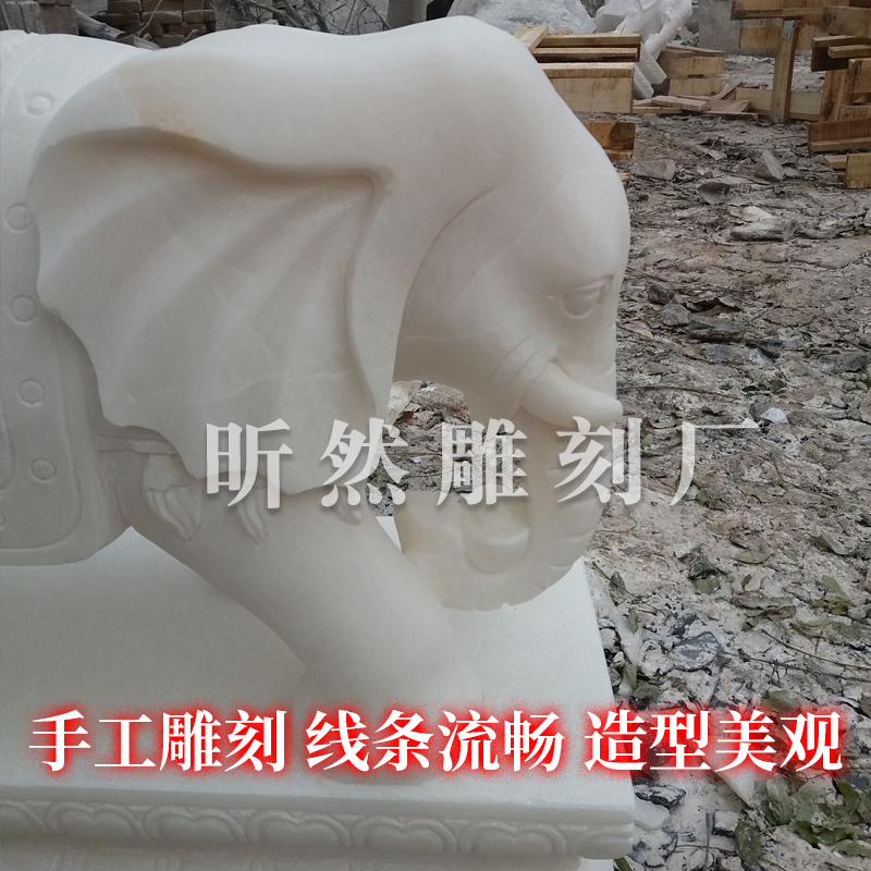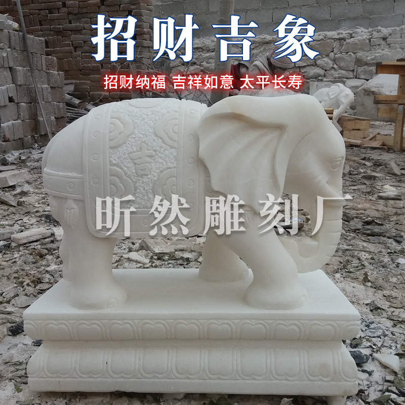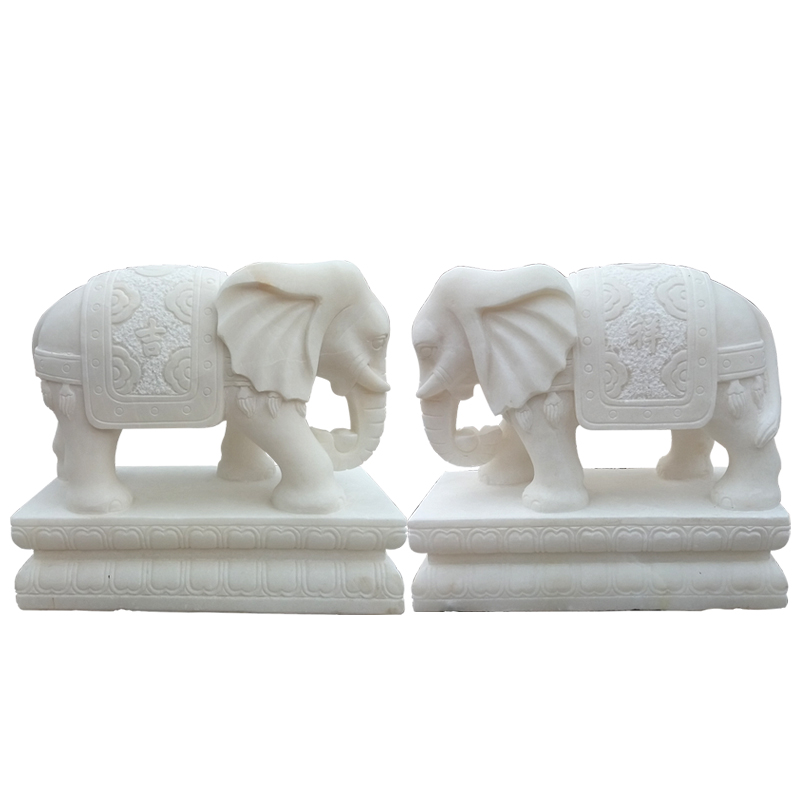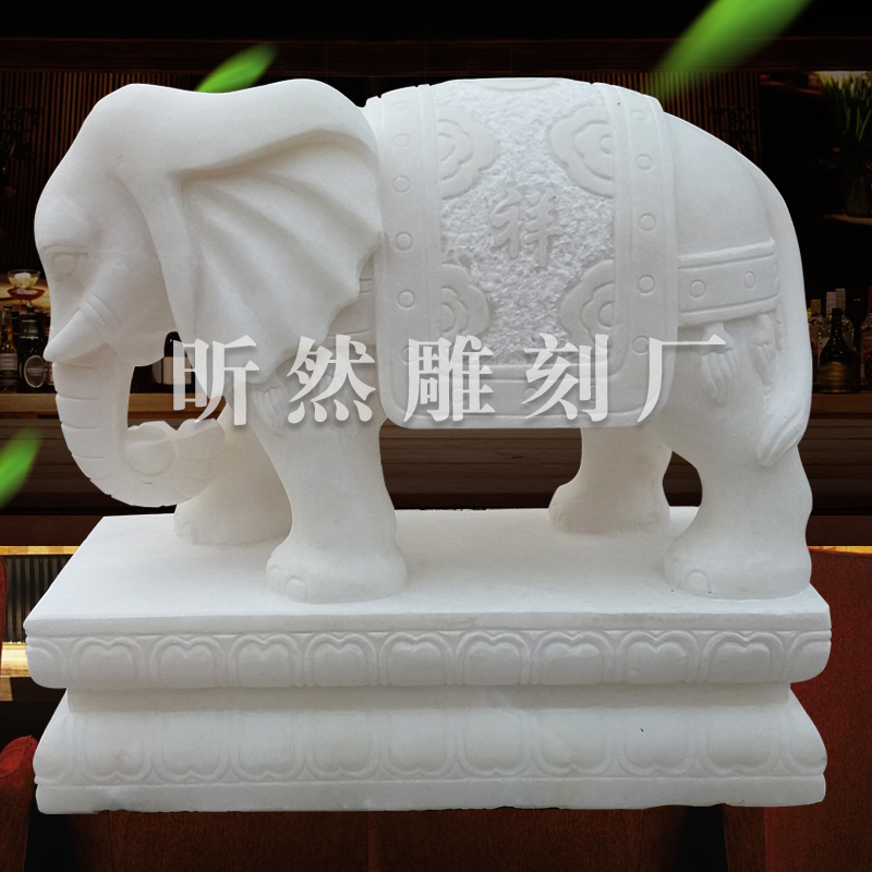 Han Bai Jade Stone Carving Elephant feng shui Merchants Fortune Sculpture Villa Entrance town Residence Elephant Crafts Gifts Swing to Small Elephant Pair of Pendulum Pieces