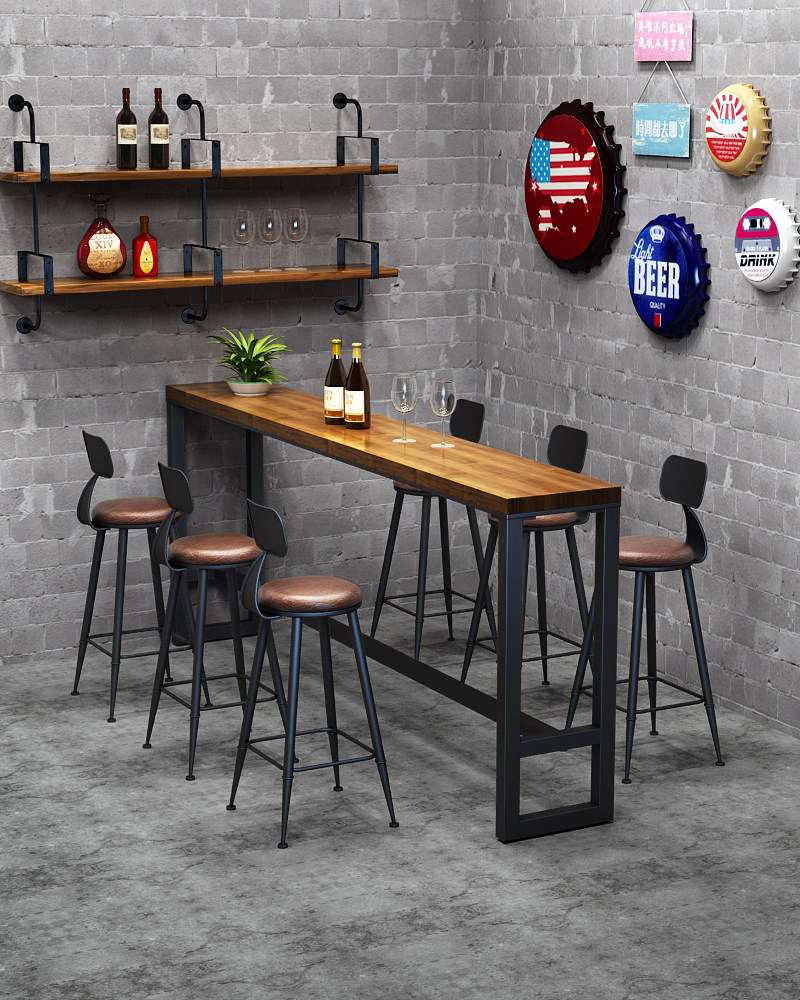 American-style solid wood bistro cafe clear bar bar scattered table retro high-footed bar stool table and chair combination