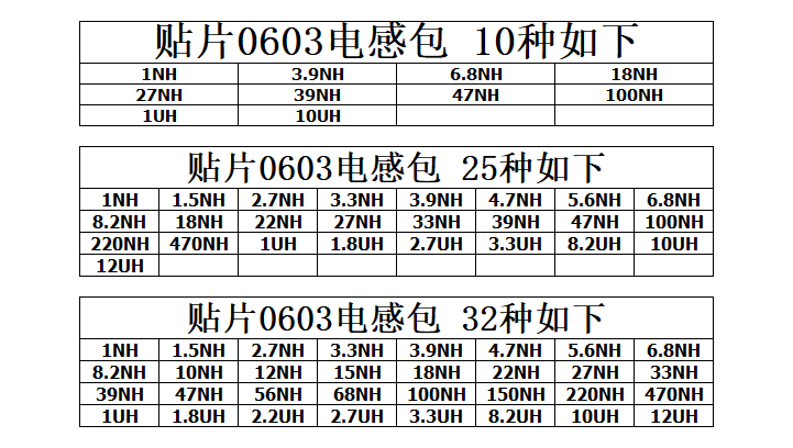 0603 patch SMD laminated power inductor pack elements samples are commonly used 25 each of 20 total of 500 NUH