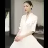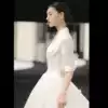 French satin light wedding dress 2021 new bridal tail forest department super fairy dream long-sleeved temperament high-end thin woman